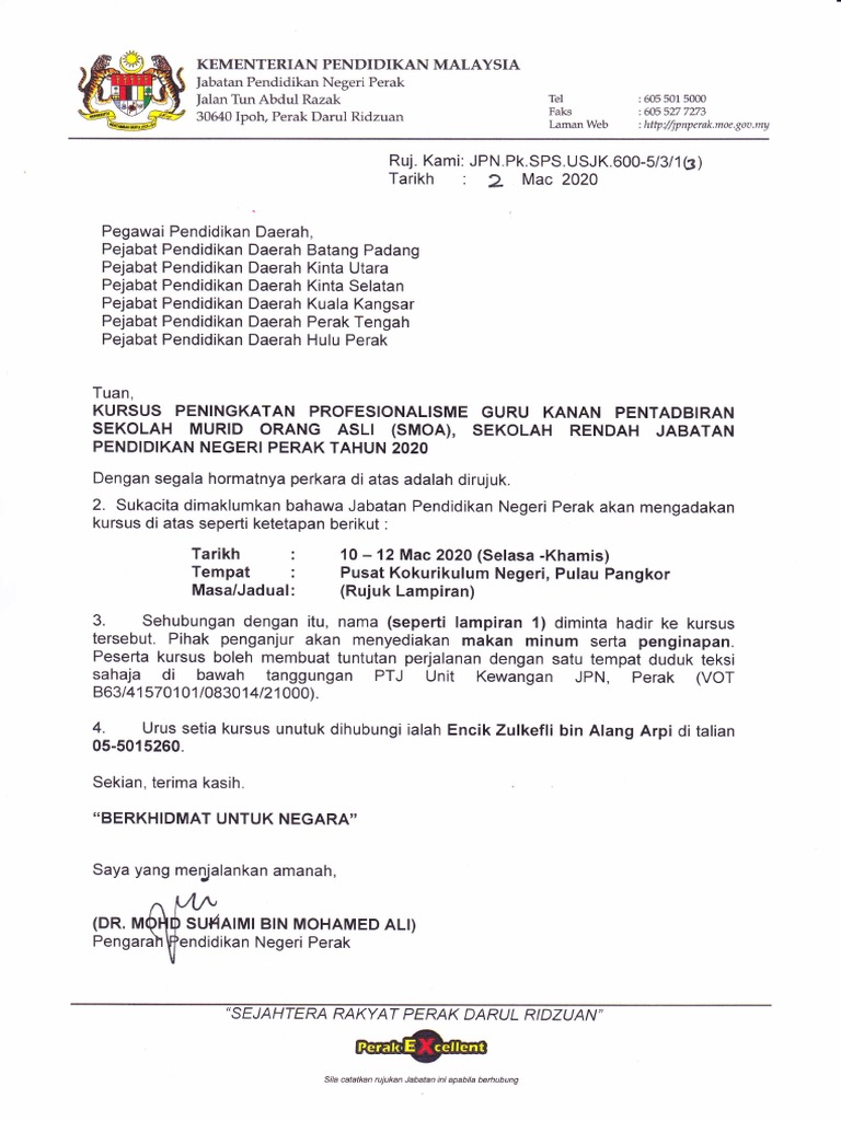 Related : Pejabat Pendidikan Daerah Kinta Selatan : Pejabat Pendidikan Daerah Kinta Selatan Kursus Kepimpinan Dan Motivasi Tingkatan 6 Pra U 26 28 Hb Ogos 2016 Pusat Latihan Kadet Remaja Sekolah Pulares Batu Gajah Perak 2 30 / Ainal suhaidi (ppm daerah kinta) pada muka depan sampul surat..